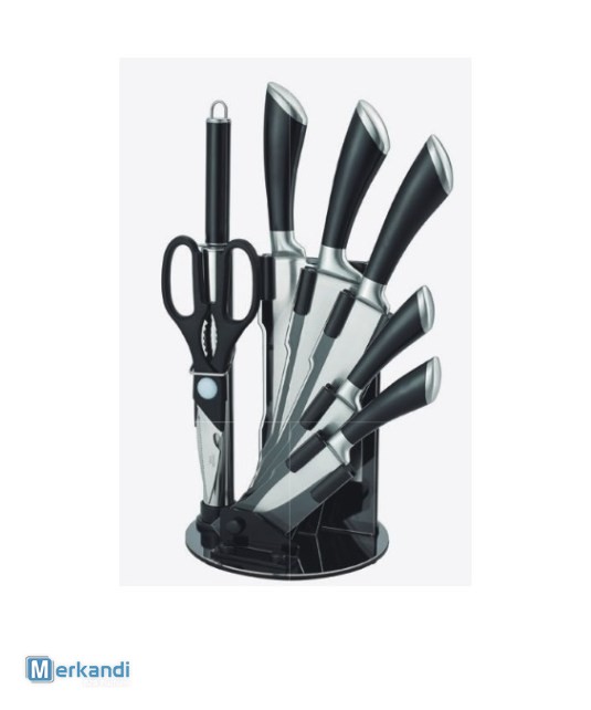Αυτό το σετ 6 μαχαιριών από ανοξείδωτο ατσάλι θα κάνει τη δουλειά σας πιο εύκολη. Αυτό το σετ περιλαμβάνει ένα μαχαίρι santoku, ένα μαχαίρι σεφ, ένα μαχαίρι ψωμιού, ένα βοηθητικό μαχαίρι, ένα μαχαίρι καθαρισμού, μια ξύστρα και ένα ψαλίδι. Αυτά τα μαχαίρια διαθέτουν αντικολλητική επίστρωση που επιτρέπει στα τρόφιμα να γλιστρούν εύκολα και να διατηρούν σταθερή ευκρίνεια. Αυτό το σετ 6 μαχαιριών είναι ασφαλείς, ανθεκτικές και ποιοτικές λεπίδες που δεν θαμπώνουν εύκολα. Αυτό σημαίνει ότι μπορείτε να ετοιμάζετε αβίαστα το ένα γεύμα μετά το άλλο με λιγότερη ζημιά στη λεπίδα σας. Ένα εξαιρετικό δώρο για τον μάγειρα ή τον σεφ της ζωής σας! Η βάση που τα συνοδεύει σας επιτρέπει να εξοικονομείτε χώρο στον πάγκο εργασίας σας ώστε να είναι πάντα τακτοποιημένα, ενώ παράλληλα εξασφαλίζει την ασφαλή αποθήκευσή τους αποφεύγοντας φθορές που μπορεί να δημιουργηθούν κατά την αποθήκευσή τους σε ένα συρτάρι ή ντουλάπι.